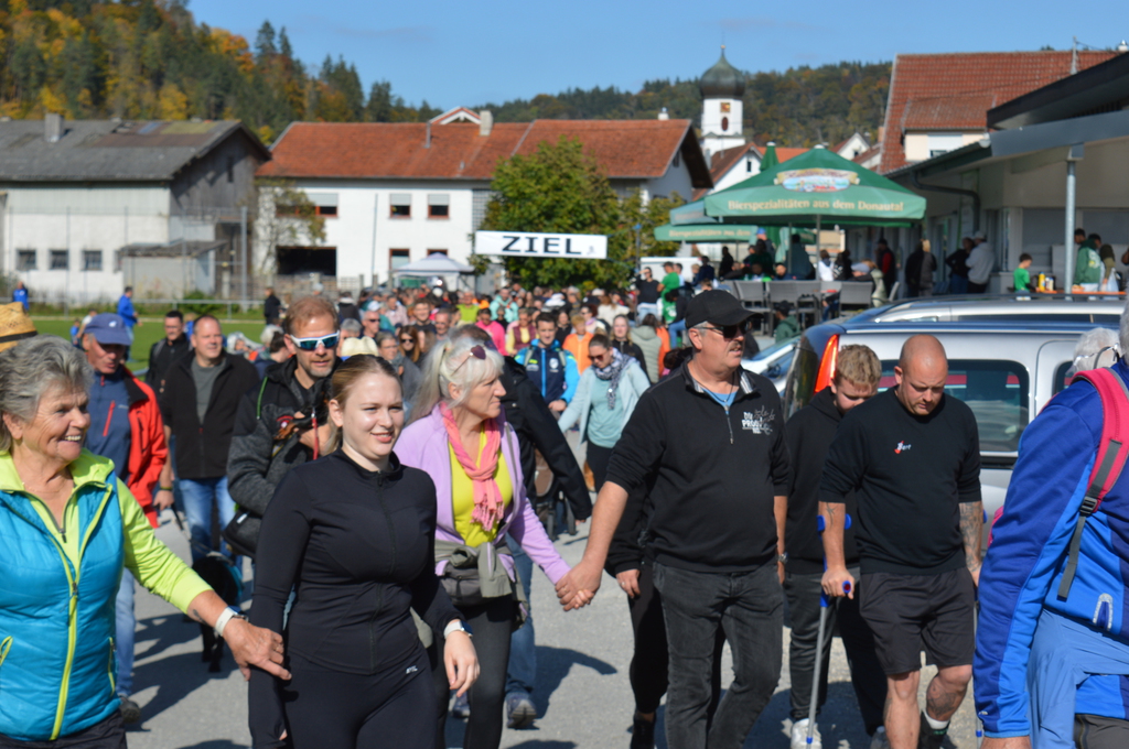Mit dem Lauf am Samstag ist dieses Ziel in greifbare Nähe gerückt, denn neben der Startgebühr von zwei Euro pro Läufer sind auch noch etliche Euros in die Spendenkasse gewandert. Zudem haben viele Firmen und Privatpersonen gespendet. Die Hauptorganisatoren des Laufs, Karin Gomeringer, Hansi Wessner und Laura Wessner freuten sich, dass viele Teilnehmer den sonnigen Tag für einen Lauf oder einfach einen Spaziergang nutzten und dabei Kilometer für den guten Zweck erliefen. Aus Harthausen/Scher war eine größere Gruppe von 18 jungen Sportlern mit vier Betreuern am Start. Auch vom Sportclub Sigmaringendorf war eine lauffreudige Gruppe angereist. Bei den größeren Strecken von 7,5 und elf Kilometer stand auf halber Distanz ein Verpflegungsstand bereit, bei dem der Wasserhaushalt aufgefüllt werden konnte.