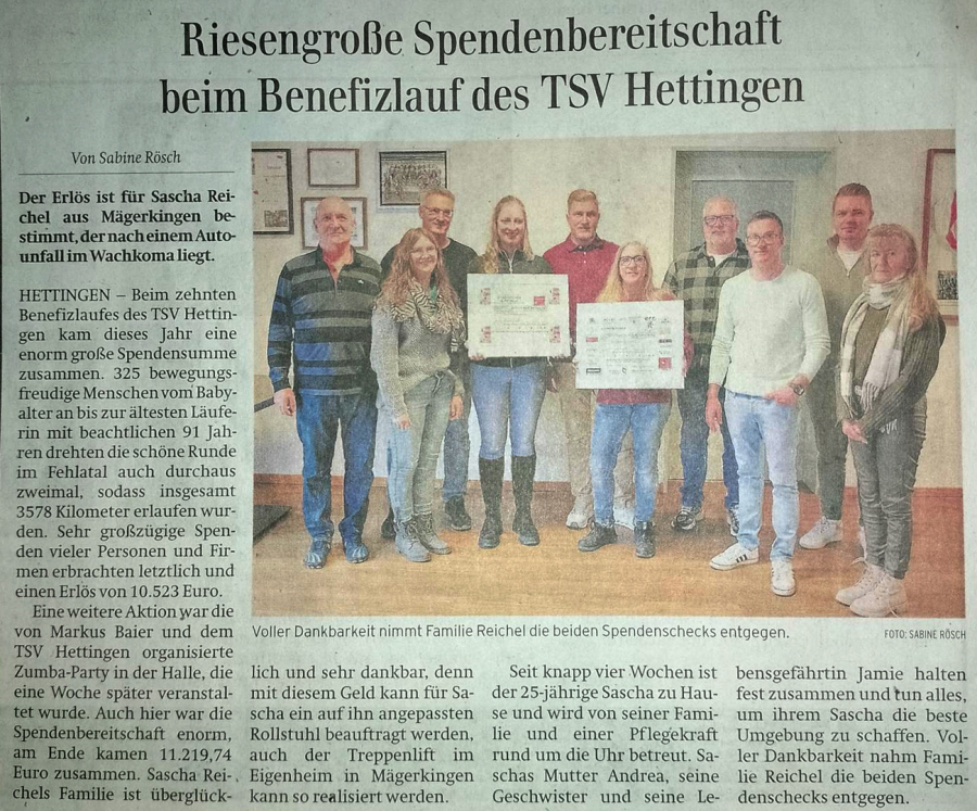 Sehr dankbar sind die Organisatoren auch für die Unterstützung durch etliche Hettinger Firmen und Privatpersonen, die den Lauf finanziell unterstützen. Das erlaufene Kilometergeld und die Spenden sollen dieses Jahr an Familie Gallus aus Braunenweiler gehen. Nicht nur, dass Stefan Gallus sein Leben und das seiner beiden Kleinkinder neu organisieren muss, nach dem frühen Tod seiner Ehefrau. Eine chronische Armverletzung erschwert seinen Alltag und er kann aktuell keiner Erwerbstätigkeit nachgehen.
